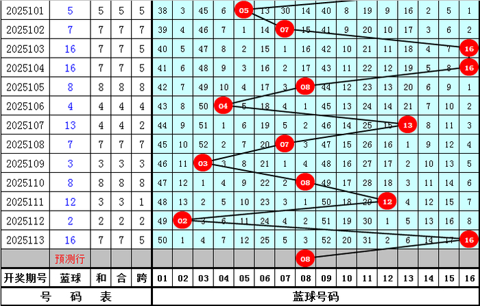 本期蓝球瞻望出现时:03、07、08、10、14之中,蓝球绝杀8码:01、02、04、05、09、11、12、13。